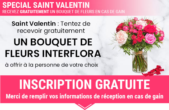 Vous avez été sélectionné pour recevoir en cas de gain un bouquet de fleurs pour la Saint Valentin. Nous vous invitons à confirmer votre participation ci-dessous :